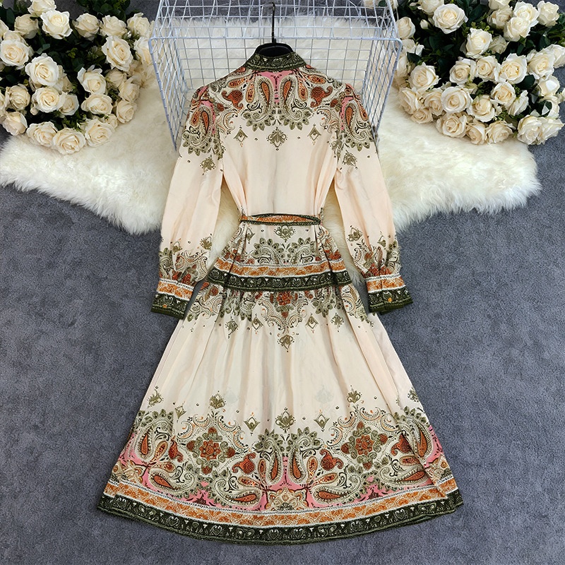 Women's Printed Long-sleeved Boho Dress