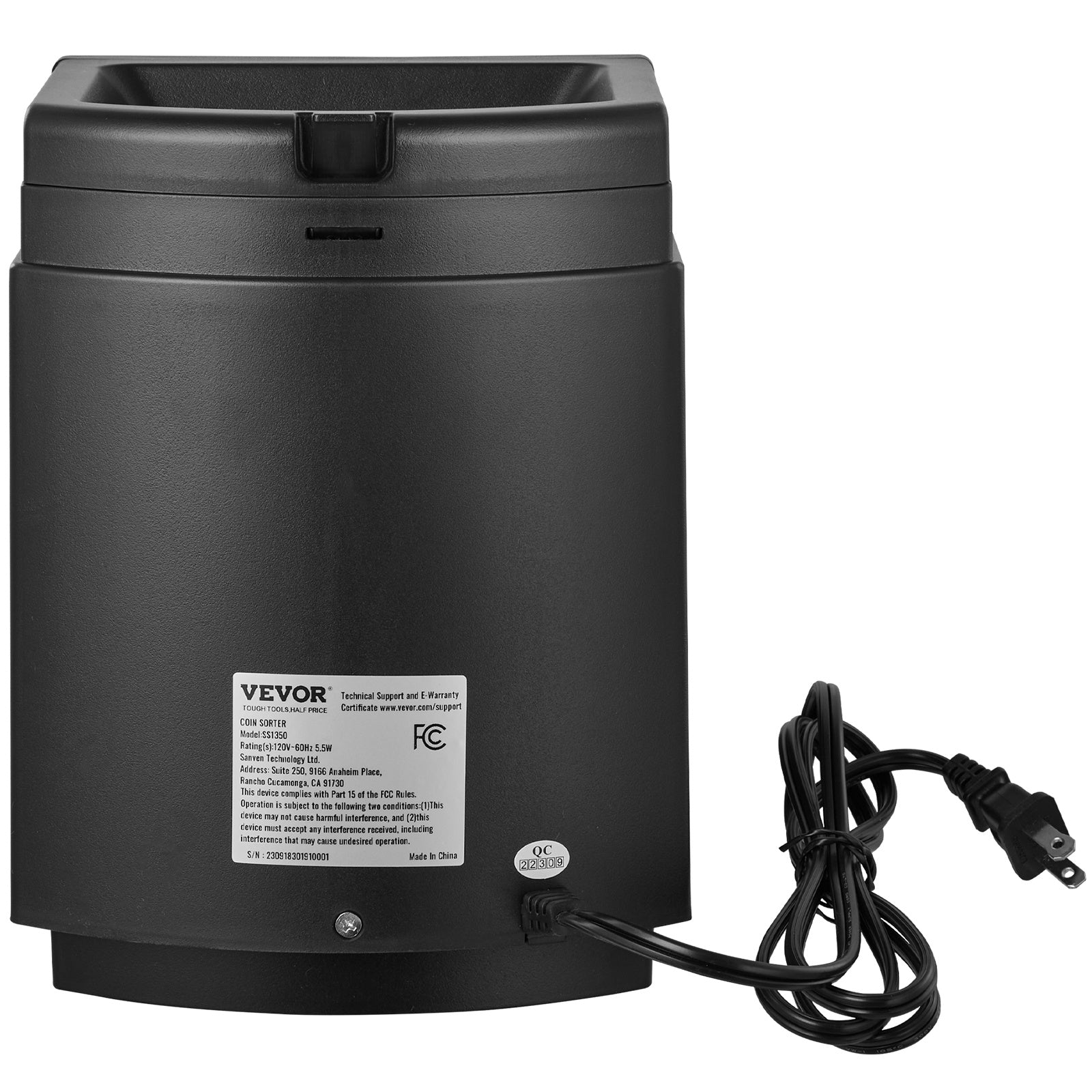 VEVOR USD Coin Sorter, Coin Sorter Machine for USD Coin 1¢ 5¢ 10¢ 25¢, Sorts up to 230 Coins/min, Coin Sorter and Wrapper Machine Holds 200 Coins Included 4 Coin Tubes, Black