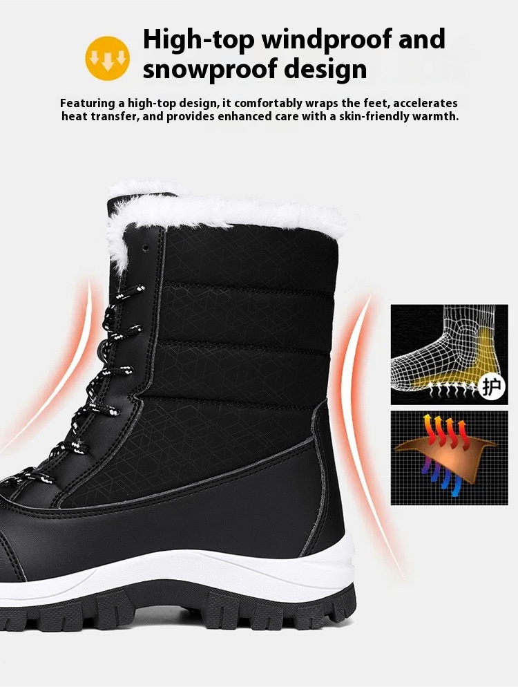 Winter Cotton Boots Outdoor Women's Fleece Lined Padded Warm Keeping Snow Boots