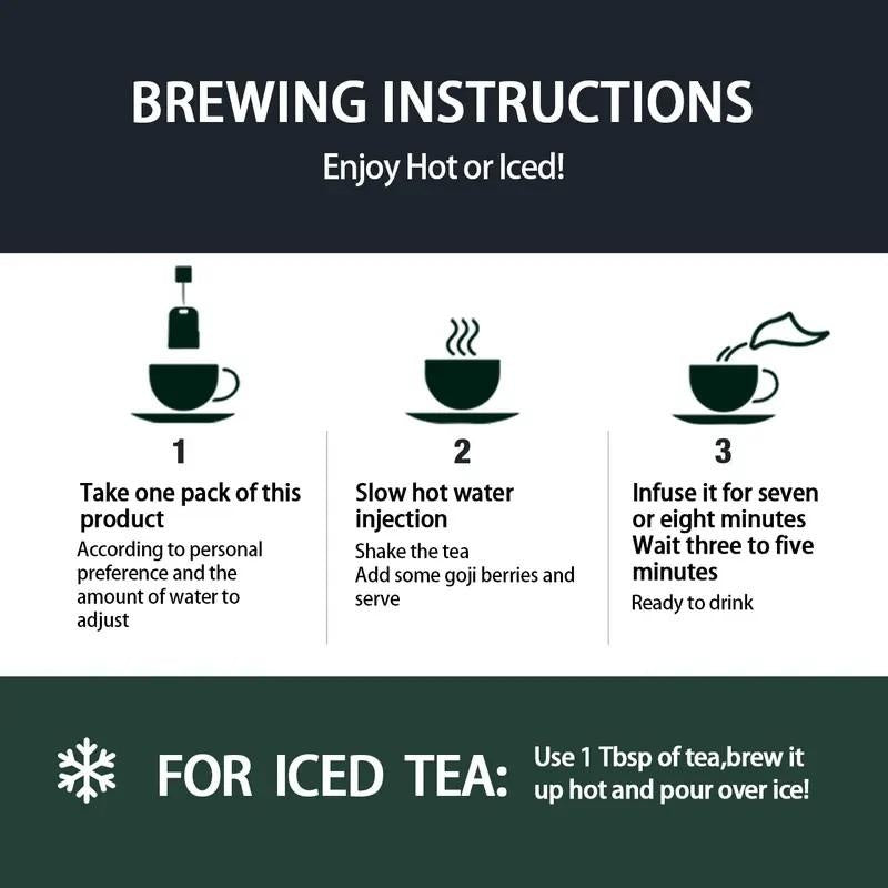 Hot tea: Drop 1 bag into 200ml hot water.Steep for 2–3 minutes.